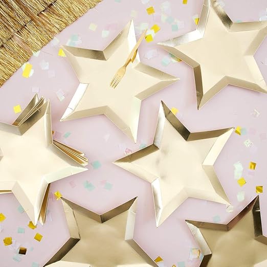 Add a touch of magic to your seasonal celebrations with our Star-Shaped Plates! Cut in delightful star shapes and embellished with shiny gold foil, these decorations bring sparkle to any occasion. Crafted from high-quality, non-toxic materials, they are safe to use and perfect for festive gatherings. Brighten up your celebrations with these charming accents! Brand: Meri Meri Barcode: 636997223995