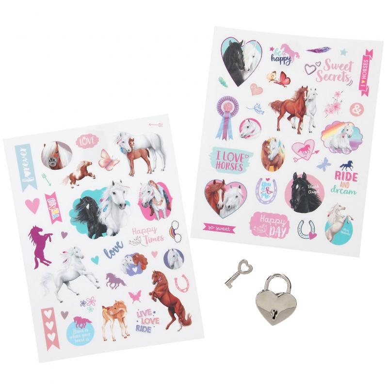 For secret thoughts and wishes: Miss Melody's diary with silver heart lock has 192 finely lined, beautifully illustrated pages and two sheets of colourful stickers. With a dreamy horse motif in soft shades of rosé and pink on the cover. Dimensions: Length: 3 cm Width: 16 cm Height: 19 cm Recommended age: 5 Brand: Depesche Barcode: 4010070626952